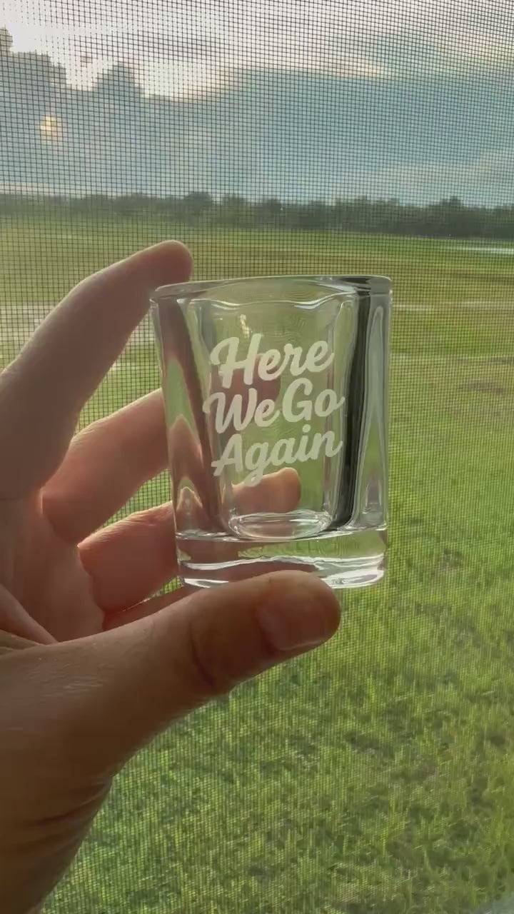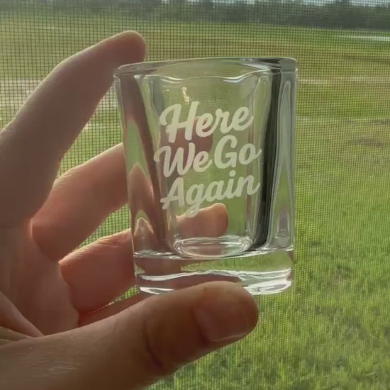 Start the party with a playful twist using the "Here We Go Again" Shot Glass. Perfect for toasting moments that deserve a cheeky celebration, this engraved glass adds a fun vibe to any gathering. Its compact size makes it easy to raise a spirited cheer, whether you're with friends or kicking off the night solo. Cheers to good times that keep coming!