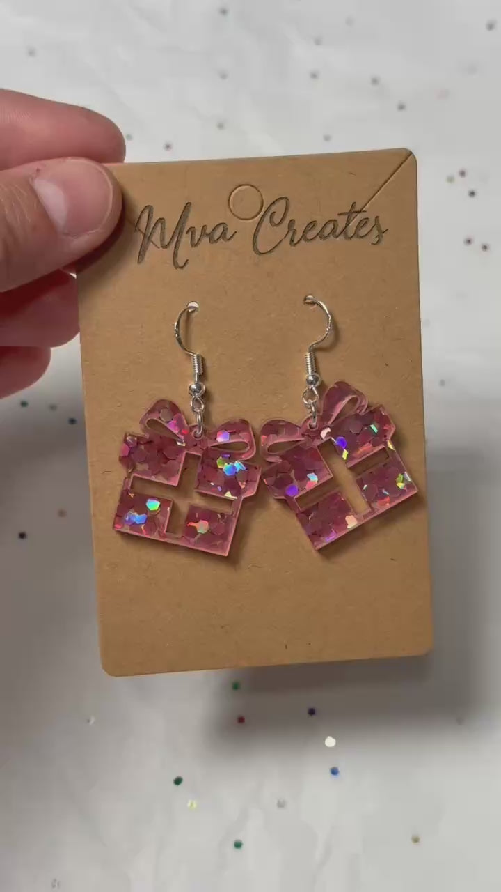 These fun and festive earrings feature a shiny present design filled with holographic pink glitter that catches the light beautifully. Perfect for Christmas parties, Valentine’s Day, birthdays, or anytime you want to add a little shimmer to your look!
