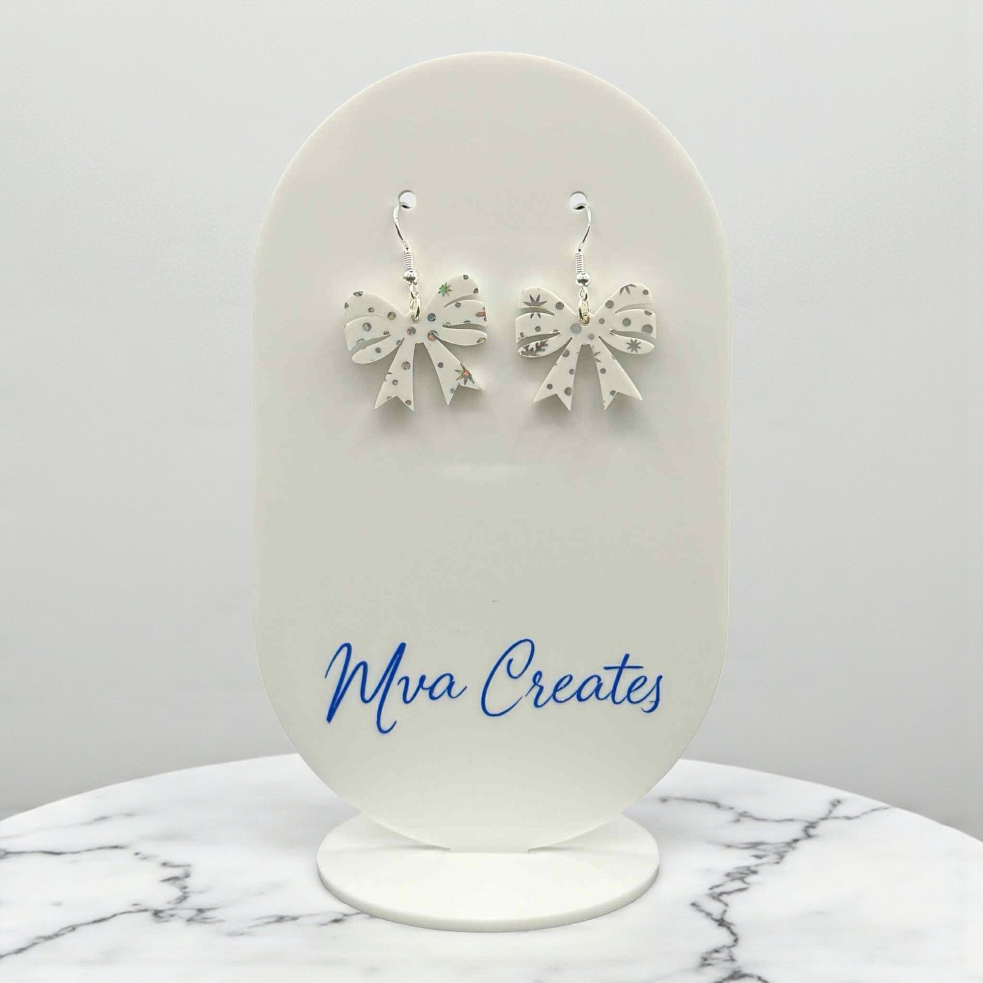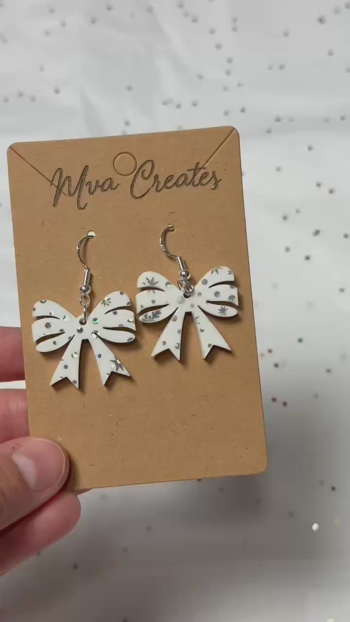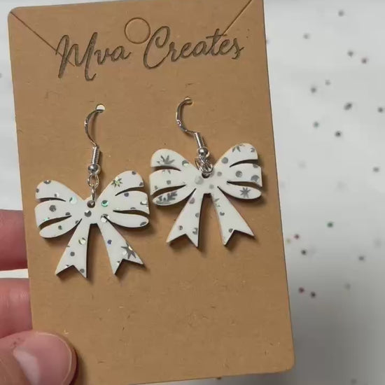 Snowflake Bow Earrings | White Acrylic Christmas Earrings | Holiday Jewelry Gift
